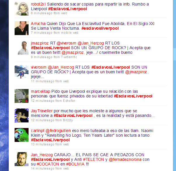1. totalmente de acuerdo con tu post, como especialista en responsabilidad social corporativa y fan de twitter, le estoy dando seguimiento al caso #esclavosliverpool y leo muchos twitts que tienen poco fundamento que más que contribuir, desinforman.