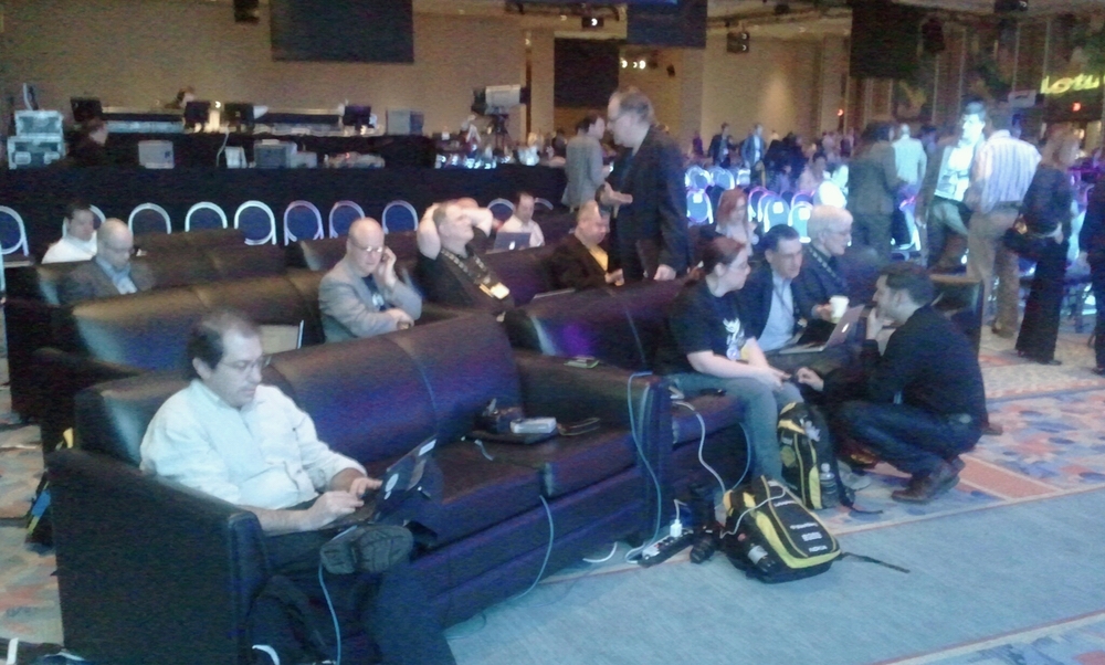 Esta foto muestra el espacio reservado para los bloggers e influenciadores durante el evento Lotusphere 2011 de IBM. Las sillas de atras al fondo son en las que todos los demás asistentes – incluídos los analistas y miembros de la prensa, así como los altos ejecutivos invitados – estaban sentados.