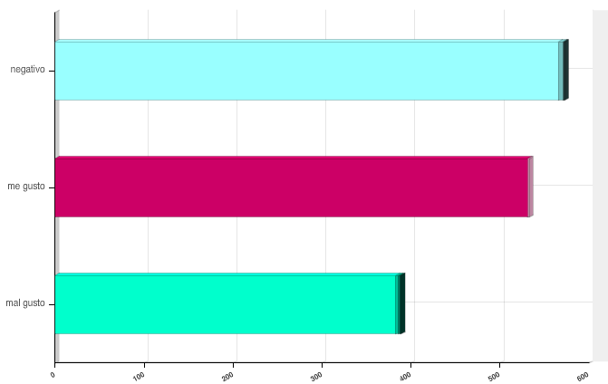 Los grupos»negativo y mal gusto» sumados casi duplican los comentarios del grupo «Me gusto». Esta relación seguro irá evolucionando durante el día, nuevos términos y textos surgirán que podamos ir añadiendo al monitoreo y eso nos servirá para definir mejor las cosas