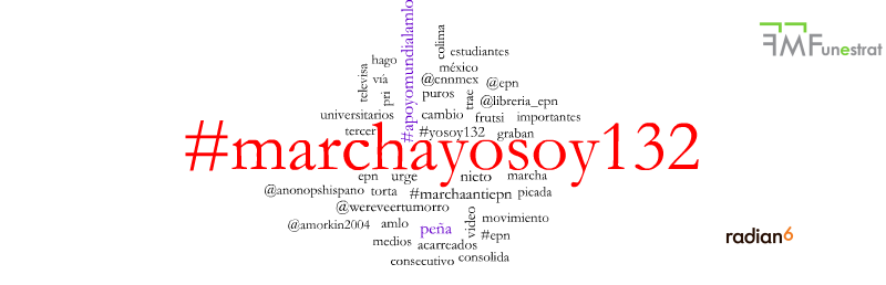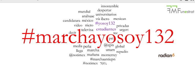 Me decidí a medir con Radian6 los 3 hashtags que me parece fueron los más usados: #yosoy132 el cual fue usado el viernes durante la marcha en Santa Fe contra Televisa por estudiantes de la Ibero, TEC y UNAM entre otros. Posteriormente, Sábado y Domingo (y seguro seguirá por un buen rato) se usaron #MarchaYoSoy132 y #MarchaAntiEPN para hablar de la marcha organizada por la sociedad civil y estudiantes en contra de la manipulación mediática a favor de un candidato a la presidencia en México.