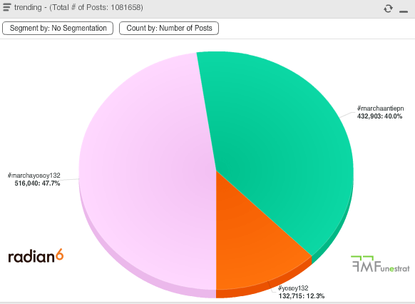 Los invito a ver la numeralia que saqué usando Radian6 para los hashtags del movimiento #yosoy132 en mi artículo aquí.
