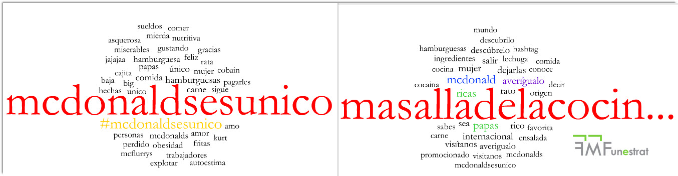 Estoy seguro de que al ver la imagen de nube de conversaciones ya notaron algo: Hay más palabras negativas contra el producto de la marca que en el topic que se promocionó primero. Es claro que la crisis del primero tuvo más diversión y «pegue» gracias a que la gente lo correlaciona con el día internacional de la mujer, no se escapan los ingredientes pero es el ingenio de la gente el que provoca la crisis sin duda para después ser el problema eterno de la mala fama de ingredientes lo que toma el control de la conversación en el segundo tema. Aquí es donde una de mis hipótesis de crecimiento del segundo Topic se pone en duda: si se activaron a campeones e influencers no tendríamos que ver tal cantidad de comentarios negativos en #McDonaldsesunico.